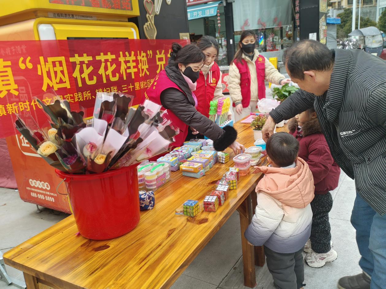 为积极倡导文明、绿色、安全的节日生活方式,营造清新、祥和的佳节氛围,12月31日,阜阳颍州区三十里铺镇新时代文明实践所、镇妇联联合三十里铺社区新时代文明实践站、社区妇联,在三十里铺社区翰林院集贸市场入口处组织开展了“烟花花样换”主题活动。活动通过以烟花置换鲜花、绿植、玩具等物品的方式,倡导群众自觉遵守禁燃禁放规定,共同营造安全、文明、绿色的节日环境。