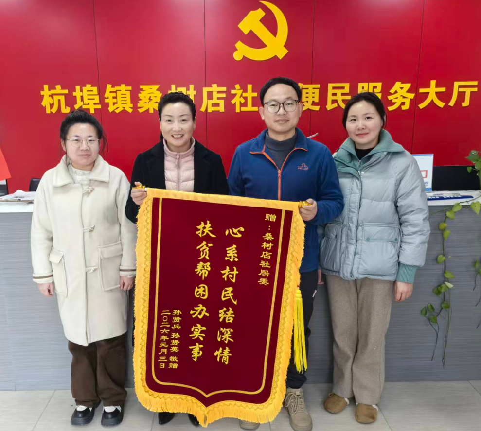 在社区的悉心关怀与帮扶下,孙贤兵的精神状况有了明显改善,如今也会主动走出家门,到社区与邻里闲谈交流。近日,孙贤兵的妹妹专程来到社区便民服务中心,送上写有“心系村民结深情 扶贫帮困办实事”的感谢锦旗,还带来一整个波罗蜜表达心意。