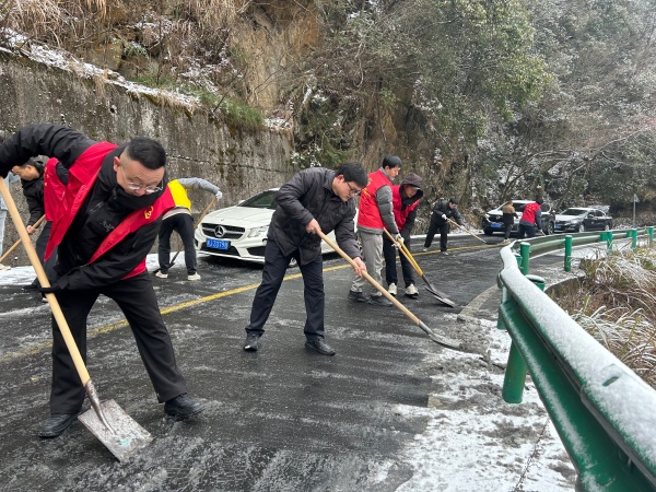 “大家加把劲,先集中清理事故车周边的冰层,必须尽快恢复道路通行……”1月20日上午,受强冷空气影响,黟县洪星乡迎来持续低温雨雪冰冻天气。由于地处山区,海拔较高,境内S222省道部分路段及多条乡村道路出现积雪结冰现象,给群众出行和生产生活带来较大影响。面对严峻考验,洪星乡党委、政府坚持“人民至上、生命至上”原则,第一时间启动应急预案,迅速组织动员各方力量,一场保畅通、护民安的温暖行动在风雪中全面展开。