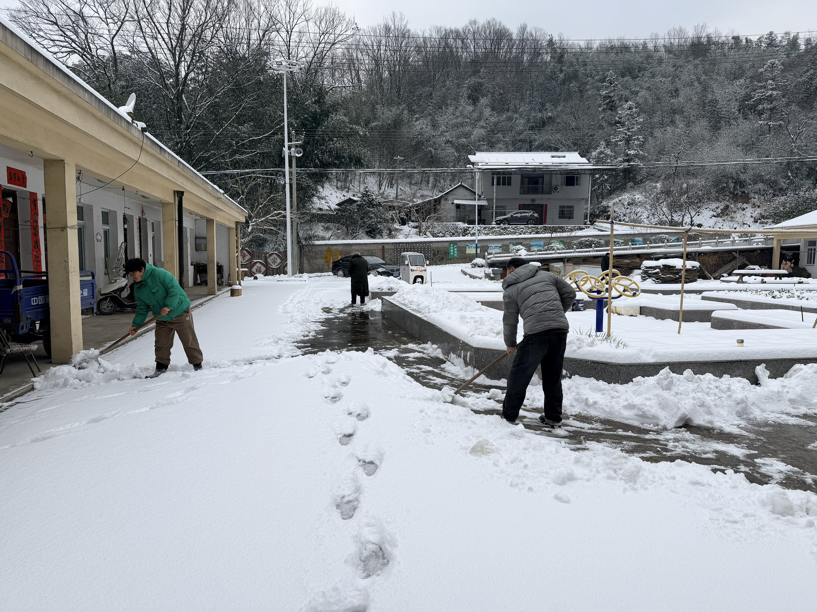 坚守岗位不松懈,当好群众“主心骨”。镇村两级严格执行24小时值班和领导带班制度,值班人员坚守岗位、履职尽责,密切关注天气变化、路况信息和灾情动态,畅通信息报送渠道,确保各类突发情况第一时间发现、第一时间上报、第一时间处置。同时,组建应急抢险队伍,备足融雪剂、铁锹、防寒物资等应急保障用品,随时待命应对各类突发险情。全体党员干部以“时时放心不下”的责任感,用坚守与担当诠释为民初心,成为低温雨雪天气中守护群众安全的 “暖心力量”。