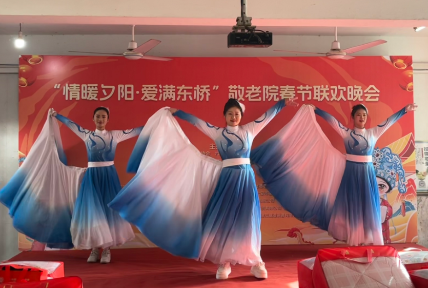 饭菜香中,春节联欢晚会也拉开帷幕。开场舞《丽人行》舞姿曼妙,瞬间点燃现场气氛;黄梅戏《夫妻观灯》《夫妻双双把家还》等经典剧目轮番上演,熟悉的旋律让老人们忍不住跟着哼唱;民歌串烧、舞蹈《粉墨》《明月几时有》等节目精彩纷呈,台下掌声、笑声不断。演出间隙,王志登上舞台与老人们亲切交流。他表示,作为餐饮人,能用美食传递温暖是自己的荣幸,未来会持续关注家乡的公益事业,常回家看看,为老人们带去更多关怀。随后,爱心人士也先后发言,表达了对老人们的新春祝福,传递了企业的社会责任与担当。