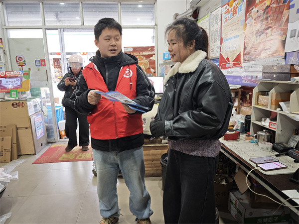 聚焦辖区商户群体,织密经营防护“安全网”。针对沿街商铺、农贸市场等经营主体,该镇组织工作人员开展走访宣传,实现全覆盖。工作人员结合商户经营场景,讲解各类非法集资形式,明确商户相关法律责任,提醒其警惕虚假投资项目、守住经营底线,同时鼓励商户担当防非宣传“联络员”,形成良好宣传效应,提升商户风险防范意识和法治观念。