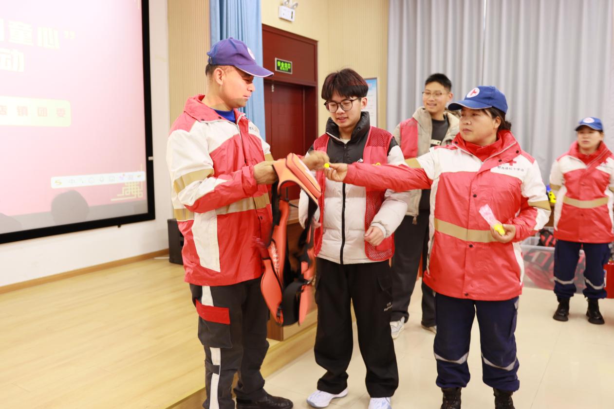 活动伊始,志愿者们首先开展安全教育宣讲,结合生动案例和实操演示,为孩子们讲解防溺水、应急救援等安全知识,志愿者们还现场演示了救生衣的正确穿戴方法,让孩子们在互动中掌握实用的自救技能。随后,志愿活动中心理事沈柳花代表爱心人士发表致辞,鼓励孩子们勇敢面对生活困难,树立远大理想,努力成长为对社会有用的人。