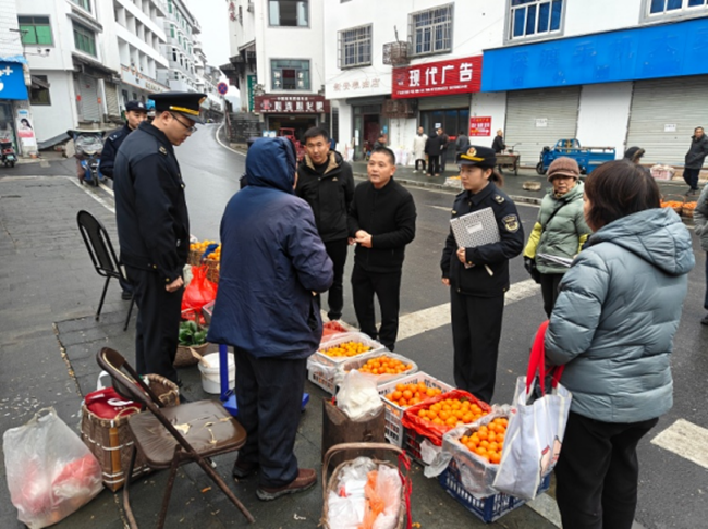 年终将至,为进一步规范主镇区市场秩序,提升服务质量,营造安全、有序、和谐的新春氛围,1月5日,歙县深渡镇联合镇旅发办、派出所、市监所开展市场秩序专项整治行动。镇党委书记张杰明亲自带队,深入一线督导检查,推动各项整治措施落地见效。此次联合行动分工明确、重点突出。派出所民警向摊贩和过往群众科普相关法律法规,着重强调经营过程中要自觉维护公共秩序,妥善处理各类矛盾纠纷,严禁与游客发生口角摩擦,切实保障辖区内的治安稳定。镇市监所工作人员则聚焦诚信经营开展全面检查,重点核查计量器具是否准确,督促经营户严格落实明码标价制度,杜绝缺斤短两、哄抬物价等违法行为。镇旅发办工作人员则结合年终旅游市场特点,向摊贩讲解旅游服务规范和礼仪,引导大家注重形象与环境卫生,主动推介本地特色文旅资源,以优质服务提升游客体验感和满意度,助力深渡镇旅游品牌提质升级。在专项行动开展的同时,工作人员详细询问摊贩的经营状况和实际需求,着重强调年终岁末是消费和旅游的高峰期,要增强“宠客”意识,以热情周到的服务态度迎接每一位顾客,用实际行动擦亮深渡镇营商环境和旅游服务的金字招牌,共同营造欢乐祥和