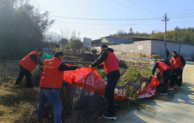 活动中,党员干部们佩戴党徽亮明身份,带着钳子、剪刀、垃圾袋等工具,奔赴村内主次干道、党群服务中心周边、村口沿线及田间地头开展清理工作。大家分工协作、干劲十足,对悬挂在电线杆、树木、墙体上的破旧横幅、褪色标语进行逐一拆除,对散落的布条、金属支架等垃圾进行分类捡拾装袋,并统一清运至指定堆放点。同时,党员干部还向沿线村民宣传村容村貌维护知识,引导大家共同参与乡村环境治理。