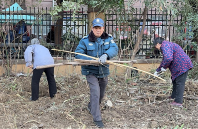 接到居民反映后,福宁社区高度重视,立即协调小区物业并组织社区公益岗人员,共同赶赴德铭小区北门现场。清理过程中,大家分工明确,默契配合,使用专业工具及清运车辆,对花坛内的枯枝败叶、散落的废弃竹竿及其他杂物进行了彻底清理和集中清运。经过一番努力,原本杂乱的花坛恢复了整洁面貌,小区入口环境焕然一新,赢得了在场居民的连连称赞。