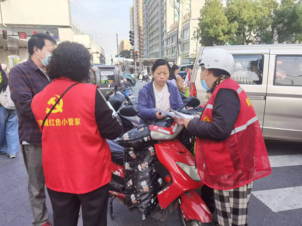 路口劝导“守好门”。社区联合交管部门组建“交通安全劝导队”,在辖区2个主次干道交叉口设劝导岗。劝导队员对闯红灯、逆行、不戴头盔等违法行为耐心劝导,针对辖区2所学校放学高峰特点,优化排班实现重点时段全覆盖,使高峰路口通行效率提升。