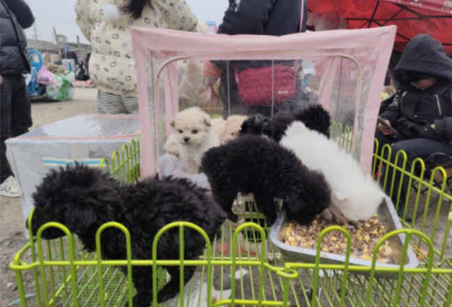 1月16日,冬日暖阳照耀下的宋庄猫狗市场彩旗飘扬,在一片欢腾的锣鼓声中正式揭开帷幕。
