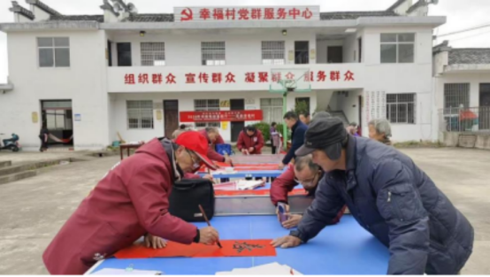 为深入践行文化惠民理念,营造欢乐祥和的新春氛围,近日,绩溪县文化馆、家朋乡新时代文明实践站、家朋乡综合文化服务中心联合胡适文化书画院,在家朋乡幸福村党群服务中心共同举办“我们的中国梦·文化进万家”2026年书画笔会基层行——走进幸福村活动。