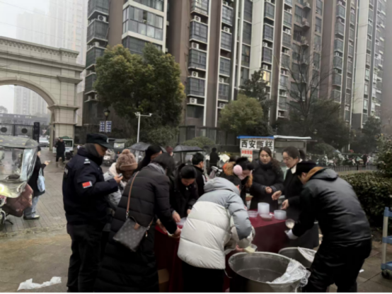 “过了腊八就是年,一碗热粥暖心田。”农历腊月初八,涡阳县星园街道谷水社区内河畔铭城小区粥香四溢、年味渐浓。为传承传统民俗、拉近邻里情谊,社区牵头联合辖区物业,组织社工与志愿者开展“粥香暖腊八 情满谷水家”送粥活动,为业主们送上寒冬里的节日暖意。