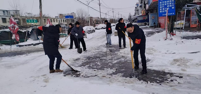 寒风凛冽,积雪厚重,但党员干部们热情高涨、干劲十足。大家手持铁锹、扫帚,齐心协力铲积雪、清道路,对易滑路段重点清理;机手们主动请缨动用铲车,对于村内主干道进行清理;同时,党员干部们还走村入户,叮嘱村民做好防寒保暖措施,提醒农机户注意棚舍加固、作物防冻,帮助行动不便的老人清扫门前积雪。