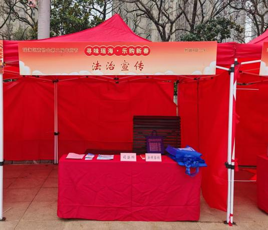 普法面对面,安全入人心。司法所工作人员精心布置了宣传摊位,通过发放宣传手册、普法海报、纪念品等方式,向过往市民普及与日常生活、消费权益、安全生产等密切相关的法律法规,旨在提升群众的法治观念和安全意识,引导大家安全消费、平安过年。