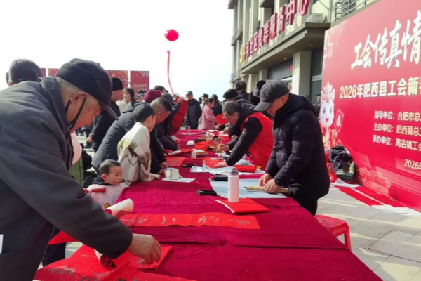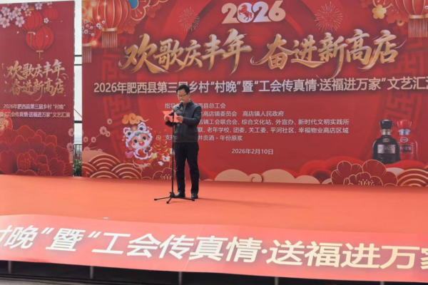 2月10日下午,肥西县高店镇平河社区文化广场上人头攒动、欢声笑语,由肥西县总工会、中共高店镇委员会、高店镇人民政府联合主办的2026年肥西县第三届乡村“村晚”暨“工会传真情送福进万家”活动在此热烈举行。活动通过“主舞台演出+分区域互动”的形式,融合文艺展演、年货市集、书法送福、公益服务、就业招聘等内容,为当地职工群众奉上了一场丰富多彩、温暖祥和的文化惠民盛宴。